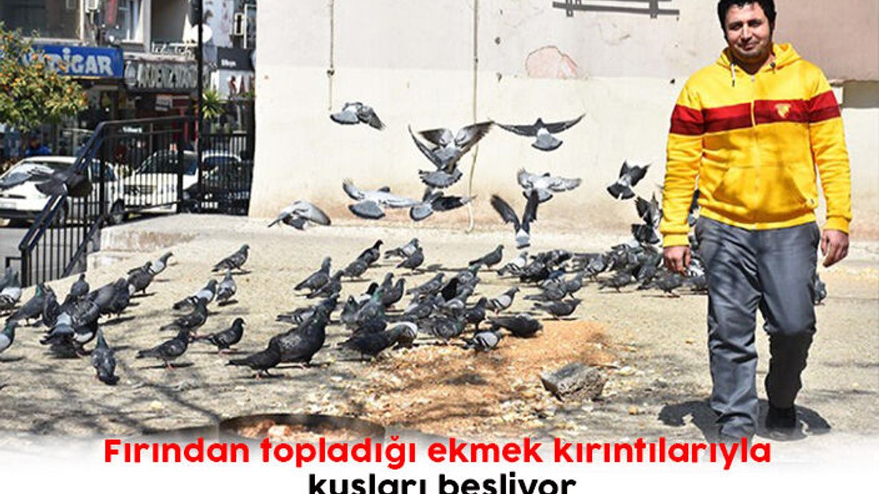 İzmir'de bir fırında çalışan hamur ustası Akın Adsız (30), ekmek kesimi sırasında kesim makinesinde ya da kasalarda biriken ekmek kırıntılarını toplayıp kentin çeşitli yerlerindeki kuşları yaz, kış demeden besliyor.