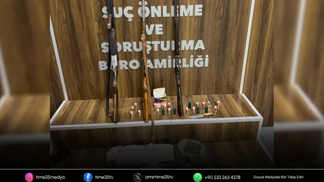 A.I.'nın ormanlık alanda hayvan damı olarak kullandığı adrese yapılan baskında uyuşturucu ticareti yaptıkları tespit edilen A.I. ve O.B. isimli şahıslar kıskıvrak yakalandı. Adreste yapılan detaylı aramada, 3 adet ruhsatsız av tüfeği, 40 gram esrar maddesi 3,5 gram metamfetamin, 4 adet uyuşturucu nitelikli hap, 23 adet dolu av tüfeği kartuşu ile uyuşturucu madde satışından elde edildiği düşünülen 72 bin 90 TL ve 210 Euro nakit para ele geçirildi.