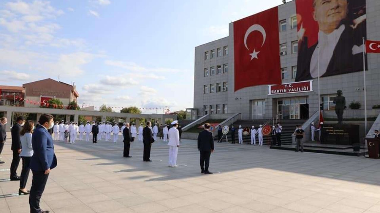 Saygı duruşu, İstiklal Marşının okunması ve akabinde Türk Bayrağının göndere çekilmesi ile devam eden törende Bartın Şehit Aileleri ve Gazileri Yardımlaşma ve Dayanışma Derneği Başkanı Ekrem Altunok bir konuşma yaptı.