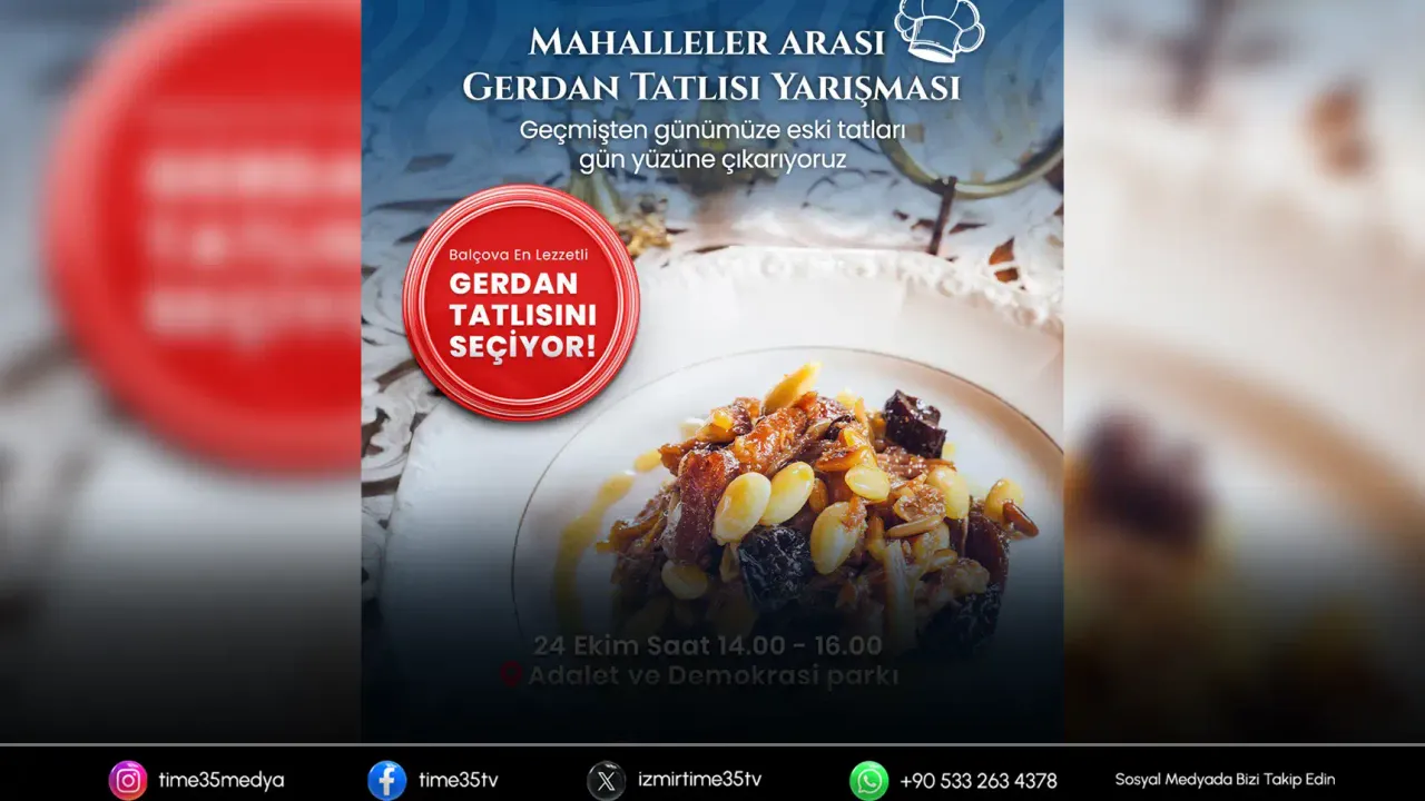 Bu kapsamda gerçekleştirilecek Gerdan Tatlısı Yarışması, 24 Ekim 2025 Cuma günü saat 14.00 – 16.00 arasında Adalet ve Demokrasi Parkı’nda yapılacak. Mahalleler arası olarak düzenlenen yarışma, hem Balçovalıları bir araya getirecek hem de geleneksel mutfak kültürüne dikkat çekecek.