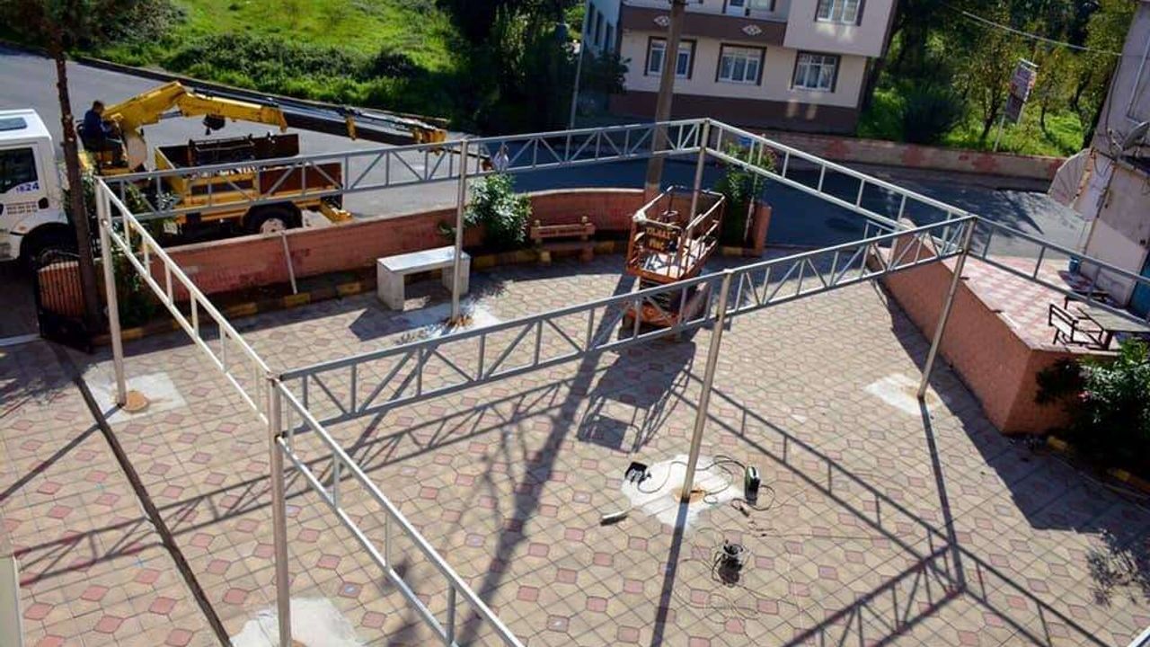 Gülüç Belediyesi cami cemaati için sundurma yapıyor