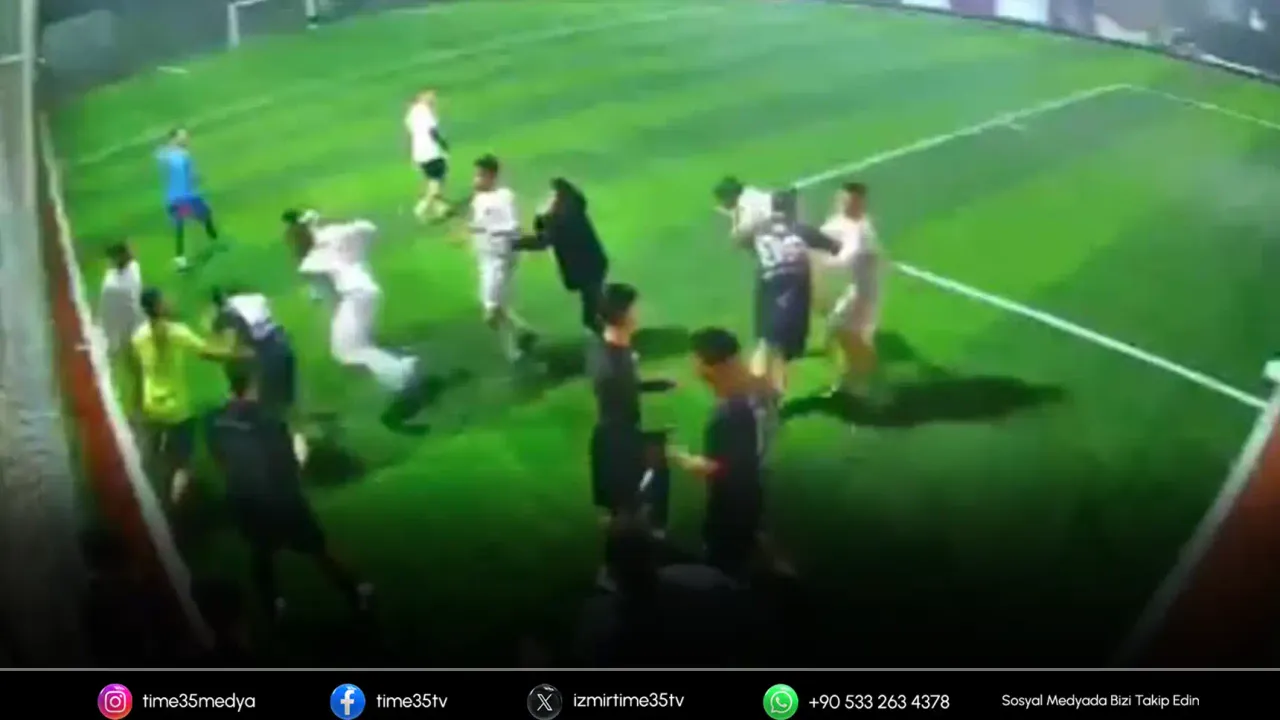 Olay, Buca ilçesinde bulunan bir halı sahada meydana geldi. Dün akşam futbol oynamak için halı sahaya gelen iki takımın oyuncuları arasında bilinmeyen bir sebeple çıkan tartışma kavgaya dönüştü. İki takımın oyuncuları tekme tokat birbirlerine girerken kavgayı ayırmaya çalışanlar da darbe aldı. İhbar üzerine bölgeye polis ekipleri sevk edilirken, kavgaya karışanlar ifadeleri alınmak üzere polis merkezine götürüldü.