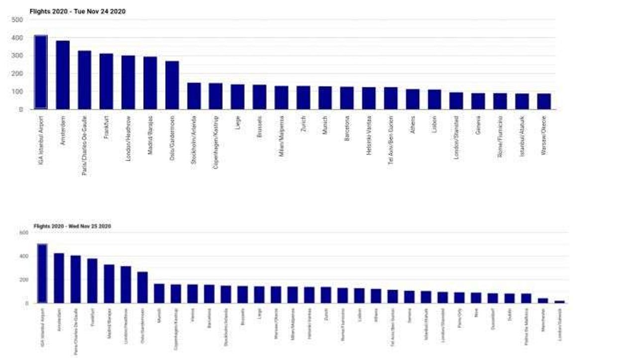 Avrupa Hava Seyrüsefer Güvenliği Örgütü EUROCONTROL’ün verilene İstanbul Havalimanı son bir haftada Avrupa’daki Havalimanları arasında en fazla uçuş gerçekleştiren havalimanı oldu. İstanbul Havalimanı böylece Avrupa’nın en yoğun havalimanları arasında yer alan Amsterdam Schiphol, Paris Charles De Gaulle ve Frankfurt Havalimanlarını geride bıtrakarak zirvede yer aldı.