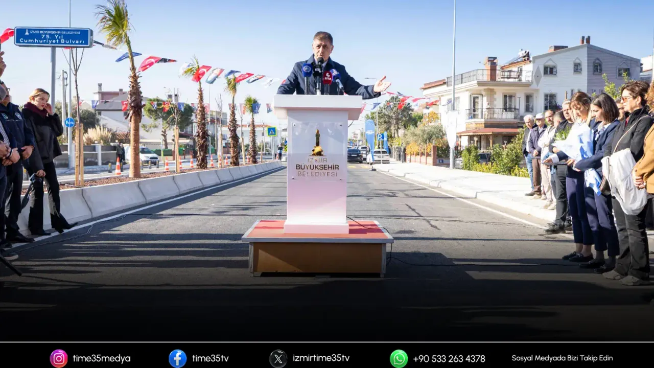 İzmir Büyükşehir Belediye Başkanı Cemil Tugay, 75. Yıl Cumhuriyet Bulvarı Projesi kapsamında İstikbal Caddesi ile Seferihisar Caddesi arasındaki 1,5 kilometrelik ilk etabın açılışını gerçekleştirdi. Törene CHP Grup Başkan Vekili Altan İnanç, Güzelbahçe Belediye Başkanı Mustafa Günay, meclis üyeleri, siyasi parti temsilcileri ve mahalle muhtarları katıldı.