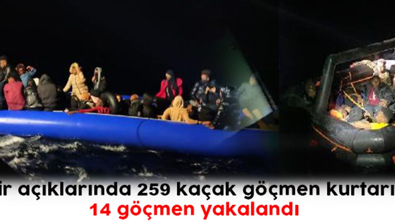 İzmir'in Seferihisar ilçesi açıklarında 14 kaçak göçmen yakalanırken, Çeşme, Karaburun, Foça, Menderes ve Dikili ilçesi açıklarında ise Yunan unsurlarınca Türk karasularına geri itilen 259 kaçak göçmen kurtarıldı.