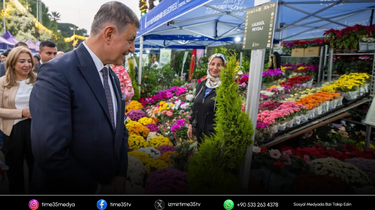 Konuşmaların ardından Başkan Tugay katılımcılarla birlikte renk renk çiçekerin yer aldığı stantları gezerek yurttaşlarla sohbet etti ve hatıra fotoğrafı çektirdi.