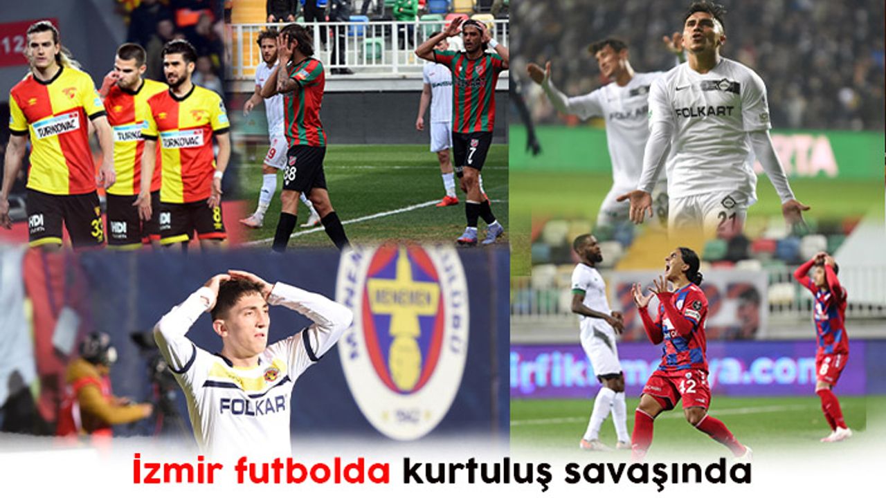 İzmir derbisini evinde kaybedip ağır yara alan Menemenspor, 27 puanla düşme hattının 2 puan ve yalnız 1 basamak üzerinde kaldı. Son 6 sezonda 2 kez küme düşen kentin 110 yıllık en tarihi kulübü Karşıyaka, 1'inci Lig'den gerilediği 3'üncü Lig'den de amatör kümeye düşme korkusu yaşıyor. 3'üncü Lig 3'üncü Grup'ta sezon boyunca tamamı alt sıralardaki takımlara karşı toplam 5 galibiyet alabilen, son 10 maçta 1 kez kazanan Kaf-Kaf, bitime 10 hafta kala düşme hattının 1 puan ve 1 basamak üzerinde bulunuyor. 3'üncü Lig 1'inci Grup'ta son 5 maçın 4'ünü kaybeden Bergama Belediyespor'un düşme hattıyla arasında 3 puan var. İzmir takımları arasında bu yıl düşme korkusu yaşamayan tek kulüp 2'nci Lig Beyaz Grup'ta topladığı 39 puanla Play-Off hattında bulunan Bucaspor 1928.