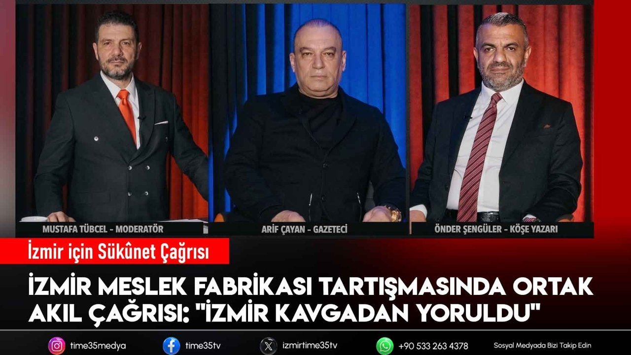 Time 35 TV ekranlarında yayınlanan Gündemin Nabzı programında, Moderatör Mustafa Tübel, Köşe yazarı Önder Şengüler ve Gazeteci Arif Çayan, İzmir’in son günlerdeki en önemli gündem maddelerinden biri olan İzmir Meslek Fabrikası konusunu masaya yatırdı. Programda, taraflar arasındaki gerginliğin yerini sükunete bırakması gerektiği vurgulandı.