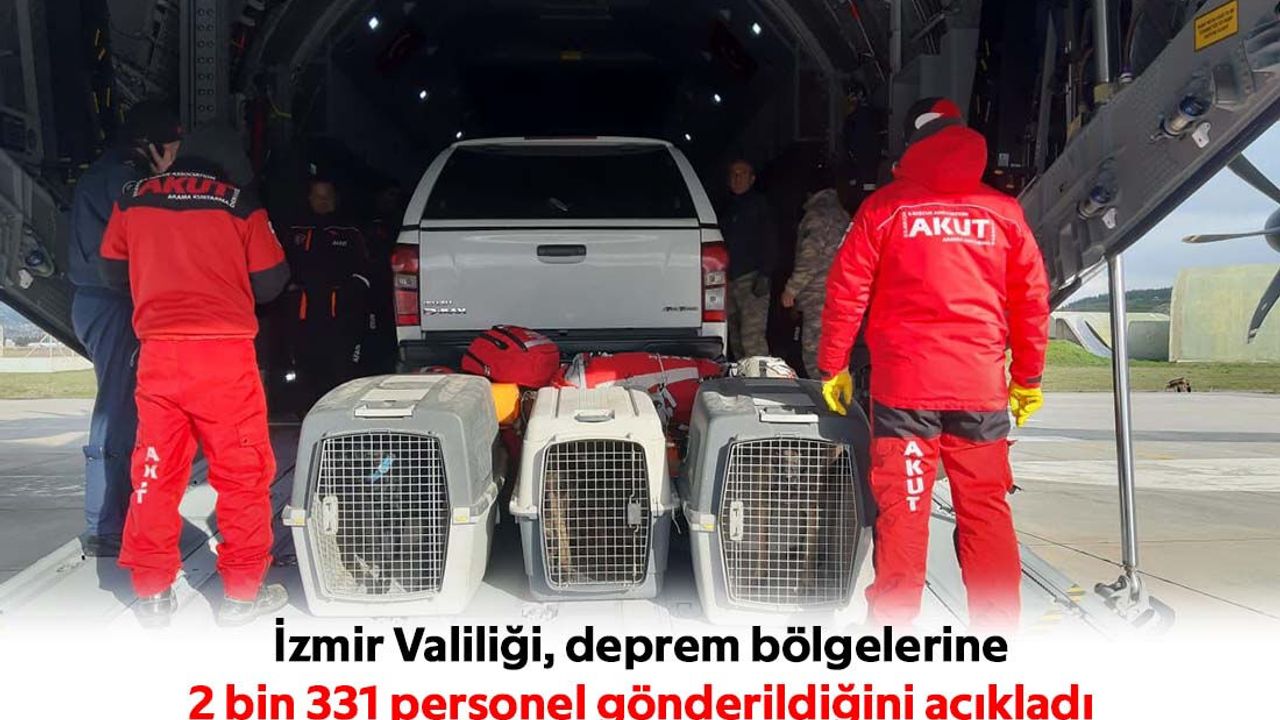 İzmir Valiliğinden yapılan açıklamada, “Ülkemizde yaşanan deprem felaketi sebebiyle bölgede yürütülen arama, kurtarma, genel asayiş ve hasar tespit çalışmalarına takviye olmak üzere ilimizden; bin 23 jandarma personeli, 181 emniyet çevik kuvvet personeli, 210 çevre ve şehircilik personeli ve AFAD ekibinden oluşan bin 414 personel, 9 sivil havayolu uçağıyla Adana ve Adıyaman'a gönderilmiştir.
