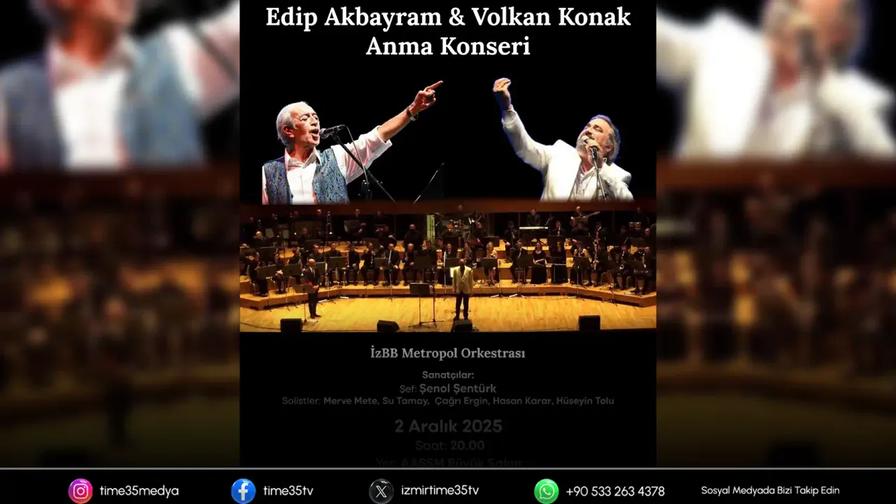 2025 yılının mart ayında hayatını kaybeden sanat dünyasının iki parlak yıldızı Volkan Konak ve Edip Akbayram yılın son günlerinde özel bir konserle anılacak. İzmir Büyükşehir Belediyesi tarafından Ahmed Adnan Saygun Sanat Merkezi düzenlenen gecede sahne alacak olan İzBB Metropol Orkestrası, Şef Şenol Şentürk yönetiminde iki değerli sanatçının unutulmaz eserlerini senfonik düzenlemeler eşliğinde seslendirecek. Konserde; Merve Mete, Su Tamay, Çağrı Ergin, Hasan Karar ve Hüseyin Tolu solist olarak sahneye çıkacak.