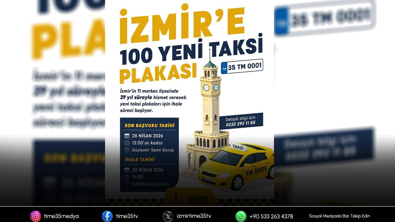 İzmir Büyükşehir Belediyesi, Balçova, Bayraklı, Bornova, Buca, Çiğli, Gaziemir, Güzelbahçe, Karabağlar, Karşıyaka, Konak ve Narlıdere olmak üzere kent merkezindeki 11 ilçede 29 yıl süreyle hizmet verecek yeni taksi plakaları için ihale sürecini başlattı. İzmir Büyükşehir Belediye Meclisi tarafından geçtiğimiz ay onaylanan çalışma kapsamında ihale, 30 Nisan 2026 Perşembe günü saat 14.00’te belediye Meclis Salonu’nda gerçekleştirilecek. İhaleye katılmak isteyenler, 28 Nisan 2026 Salı günü saat 12.00’ye kadar başvurularını Gaziemir Semt Garajı’nda bulunan Toplu Ulaşım Hizmetleri Şube Müdürlüğü Ruhsat Birimi’ne yapabilecek. Şartname bedeli 1000 TL olarak belirlendi. 29 yıllığına verilecek taksi plakalarının tahmini bedeli ise 4 milyon 195 bin lira + KDV olarak açıklandı. Detaylı bilgiye 0 (232) 293 11 85 numaralı telefondan ulaşılabilecek.