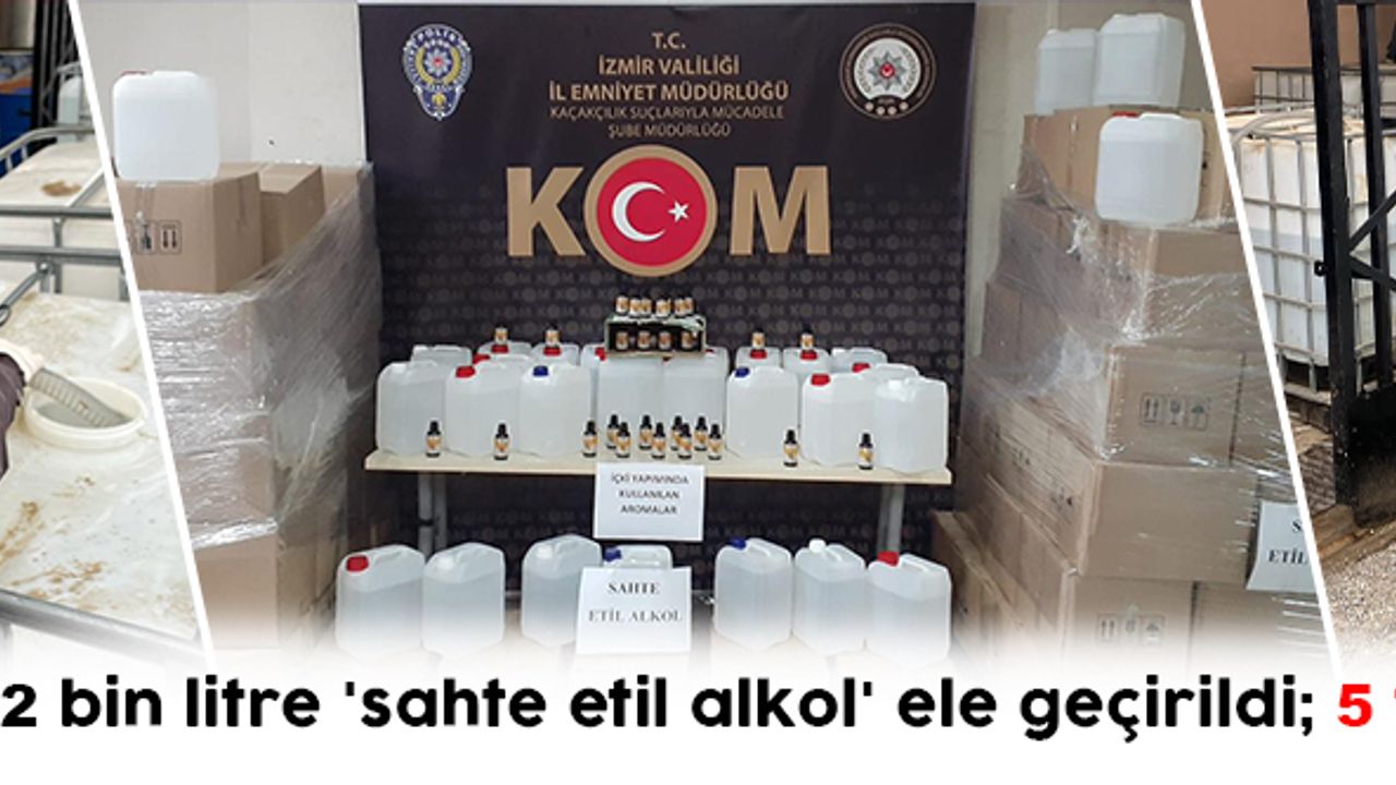 İzmir'de, polis ekiplerince yılbaşı öncesinde düzenlenen operasyonda 11 bin 845 litre sahte etil alkol ele geçirildi, gözaltına alınan 9 şüpheliden 5'i tutuklandı.