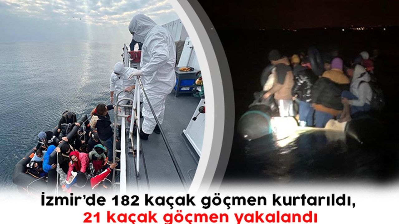 İzmir’de 182 kaçak göçmen kurtarıldı, 21 kaçak göçmen yakalandı