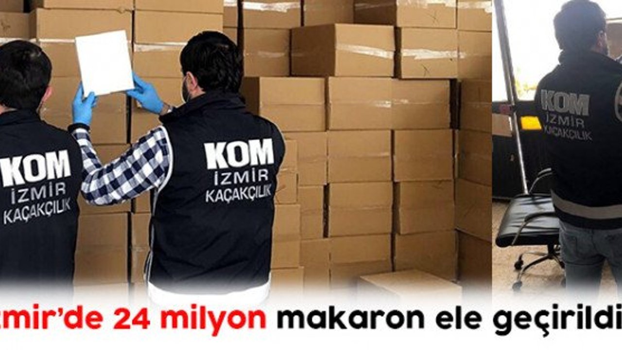 İzmir İl Emniyet Müdürlüğü Kaçakçılık Suçlarıyla Mücadele Şube Müdürlüğü ekipleri, Buca ve Bornova ilçelerinde bazı adreslerde kaçak ürünler olduğu bilgisi üzerine harekete geçti. Yapılan teknik ve fiziki takibin ardından belirlenen adreslere eş zamanlı operasyonlar düzenlendi. Adreslerdeki aramalarda 24 milyon bandrolsüz makaron, 462 bin paket doldurulmuş sigara, bin 560 paket bandrolsüz sigara kağıdı, etil alkol olduğu değerlendirilen 1 ton sıvı ele geçirildi. Operasyonlarda 5 şüpheli hakkında adli işlem yapılırken, önceden aranması bulunan 1 şüpheli de yakalandı.
