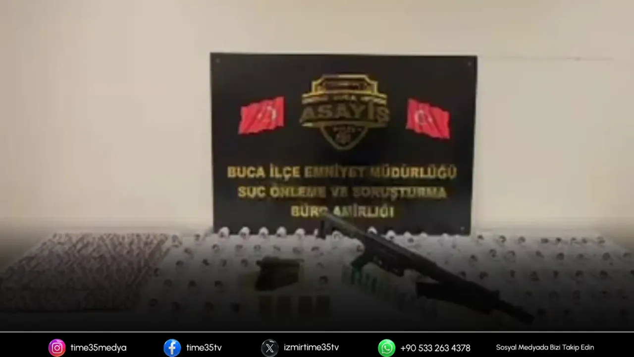Buca İlçe Emniyet Müdürlüğü ekipleri ekiplerinin uyuşturucu madde ticareti ve ruhsatsız silah bulundurma, taşıma veya satın alma suçlarına yönelik yaptığı çalışmada yakalanan V.B.’nin İnönü Mahallesi’ndeki evinde arama yapıldı. Şüphelinin adresinde yapılan aramada 7 bin sentetik ecza, ruhsatsız tabanca tüfek, ruhsatsız tabanca ve ruhsatsız tüfek ele geçirildi. Gözaltına alına V.B hakkında adli işlem başlatıldı.