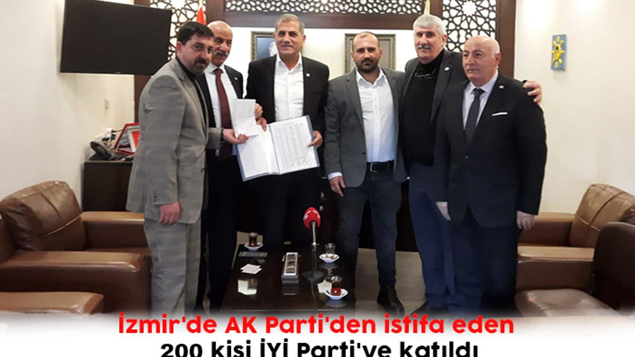 İzmir'de AK Parti'den istifa eden 200 kişi İYİ Parti'ye katıldı. İYİ Parti İzmir il binasında gerçekleşen törene partinin Erzurum İl Başkanı Melih Kırkpınar ve İzmir İl Başkanı Hüsmen Kırkpınar katıldı.