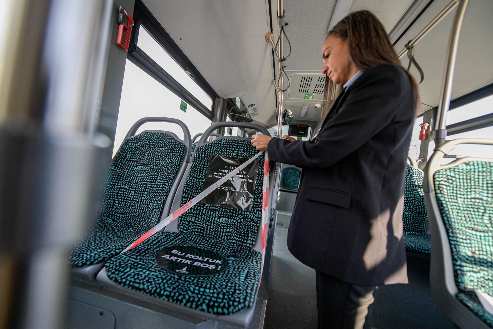Çalışma, kadına yönelik şiddetle mücadeleye dikkat çekmek, farkındalığı artırmak ve toplumsal cinsiyet eşitliği konusunda duyarlılığı güçlendirmek amacıyla hayata geçirildi. İzmir Büyükşehir Belediyesi Kadın Çalışmaları Şube Müdürlüğü’nde görevli Çağla Çağlar, “25 Kasım Kadına Yönelik Şiddete Karşı Uluslararası Mücadele Günü’nde, kentin ulaşım araçlarında farkındalık projesi gerçekleştirdik. İzdeniz feribotlarında, ESHOT otobüslerinde, İzmir Metro ve Tramvay hatlarında birer koltuk boş bırakıyoruz, üzerini şeritle işaretliyoruz. Kadına yönelik şiddetle mücadele amacıyla farkındalık yaratarak bu koltukları aramızdan alınan kadınların hatırasına ayırıyoruz. İzmir Büyükşehir Belediyesi olarak şiddetsiz bir dünya diliyoruz” dedi.
