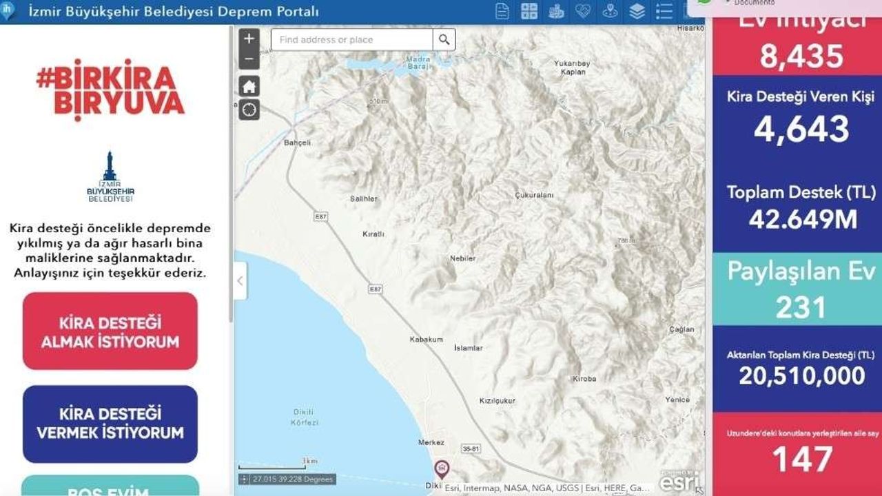 Öte yandan, İzmir Büyükşehir Belediyesi 30 Ekim depreminde evleri orta hasarlı olan 629 ailenin 5'er bin liralık kira destek ödemesini tamamladı. Bu hafta içinde evleri orta hasarlı olan 40 ailenin kira yardımının da banka hesabına yatırılmış olacağı belirtildi. Büyükşehirin, başvuru ve değerlendirmelere göre kira yardımına devam edeceği belirtildi.