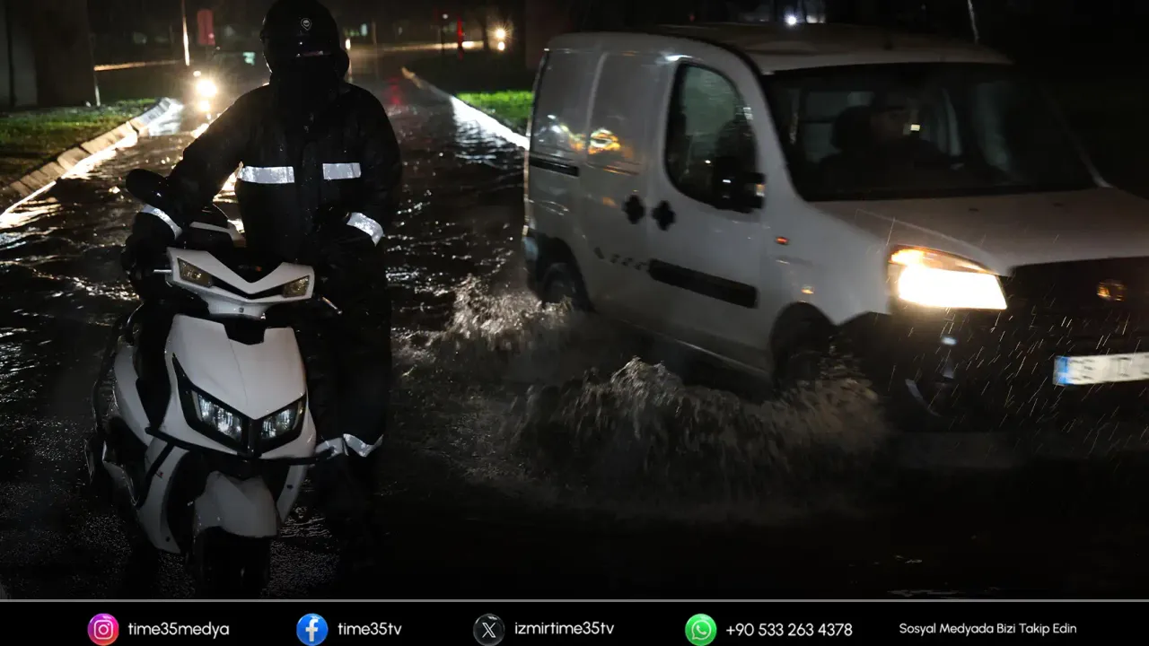 İzmir'de gece saatlerinden itibaren sağanak etkili oldu. Yollarda su birikintileri oluşurken, sürücüler trafikte zor anlar yaşadı.