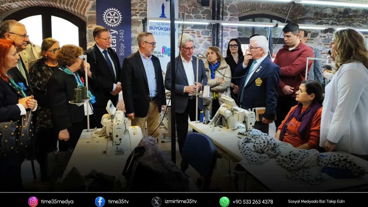 İzmir Büyükşehir Belediyesi’nin, İzmir’de yaşayan ve dikişe ilgi duyan kadınların mesleki becerilerini geliştirmelerini ve hazır giyim sektöründe ihtiyaç duyulan nitelikli iş gücüne katılmalarını amaçlayan Altın İğne Projesi, uluslararası düzeyde de dikkat çekiyor. Uluslararası Rotary Dünya Başkanı Francesco Arezzo, İzmir ziyaretinde Meslek Fabrikası Halkapınar Kurs Merkezi’nde proje kapsamında yürütülen eğitim çalışmalarını inceledi. Ziyarete İzmir Büyükşehir Belediyesi Başkan Vekili Dr. Zafer Levent Yıldır, Genel Sekreter Yardımcısı Prof. Dr. Pınar Okyay, belediye yöneticileri, Rotary temsilcileri ve proje paydaşları katıldı. Atölyeler gezildi, kursiyer kadınlarla bir araya gelinerek yürütülen çalışmalar hakkında bilgi alındı.