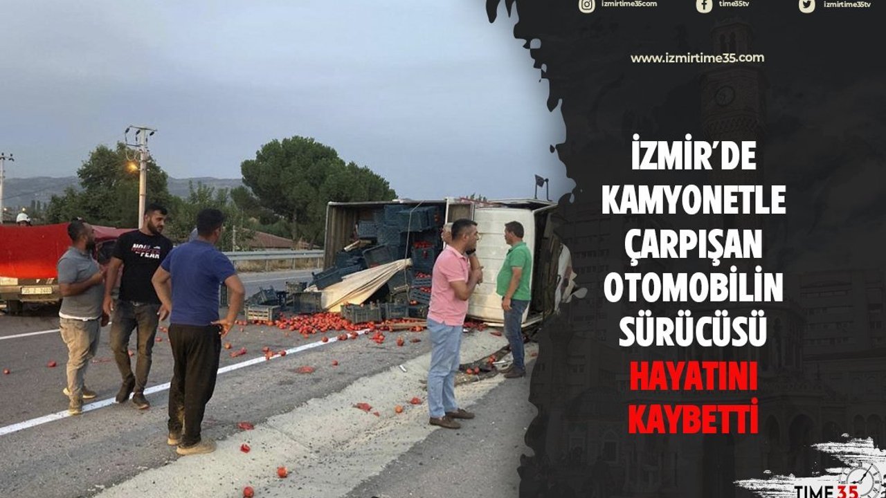 Kaza dün akşam saatlerinde Kiraz Ödemiş Karayolu Yolüstü Mahallesi mevkiinde meydana geldi. Edinilen bilgiye göre, Alim Selçuk (59) idaresindeki 35 Z 2403 plakalı Tofaş marka otomobil yolda seyir halindeyken, sürücüsünün direksiyon hakimiyetini kaybetmesi sonucu karşı şeride geçti. Bu esnada Umut M. (21) idaresindeki domates yüklü kamyonetle çarpışan otomobil hurda yığınına dönerken, kamyonet yan döndü. Kazanın bildirilmesi üzerine olay yerine jandarma ve sağlık ekipleri sevk edildi. Yapılan incelemede otomobil sürücüsü Alim Selçuk'un kaza yerinde hayatını kaybettiği belirlendi.