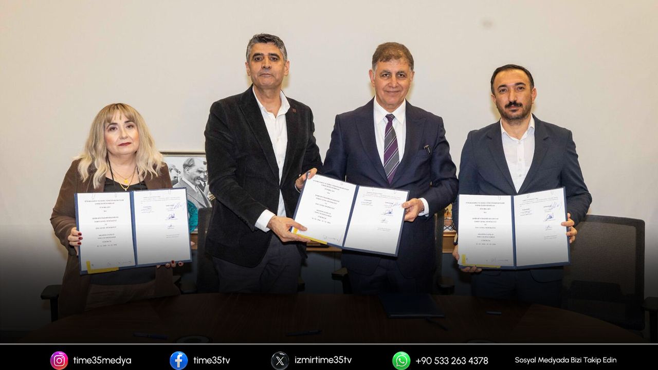 İzmir Büyükşehir Belediye Başkanı Dr. Cemil Tugay, TÜM BEL-SEN İzmir Şubesi ile 6 bin 173 memur ve sözleşmeli memuru kapsayan toplu iş sözleşmesini imzaladı. 27 bin 500 TL Sosyal Denge Tazminatı’nda uzlaşma sağlanırken, itfaiyenin ardından zabıta emekçilerine de 8 bin liralık risk pirimi hakkı tanındı. Başkan Tugay, “Hep beraber İzmir’e hizmet etmenin onurunu yaşıyoruz. Emeğini ortaya koyan, gecesini gündüzüne katarak çalışan, halkın yanında olan arkadaşlarımızın da emeğinin karşılılığı neyse onu vereceğiz” dedi. Toplu iş sözleşmesinin hem mali hem de sosyal haklar açısından önemli kazanımlar içerdiğini belirten TÜM BEL-SEN İzmir 1 No’lu Şube Başkanı Turgut Angün, “Emekten yana duruşu için Cemil Başkan’a teşekkür ediyoruz” diye konuştu.