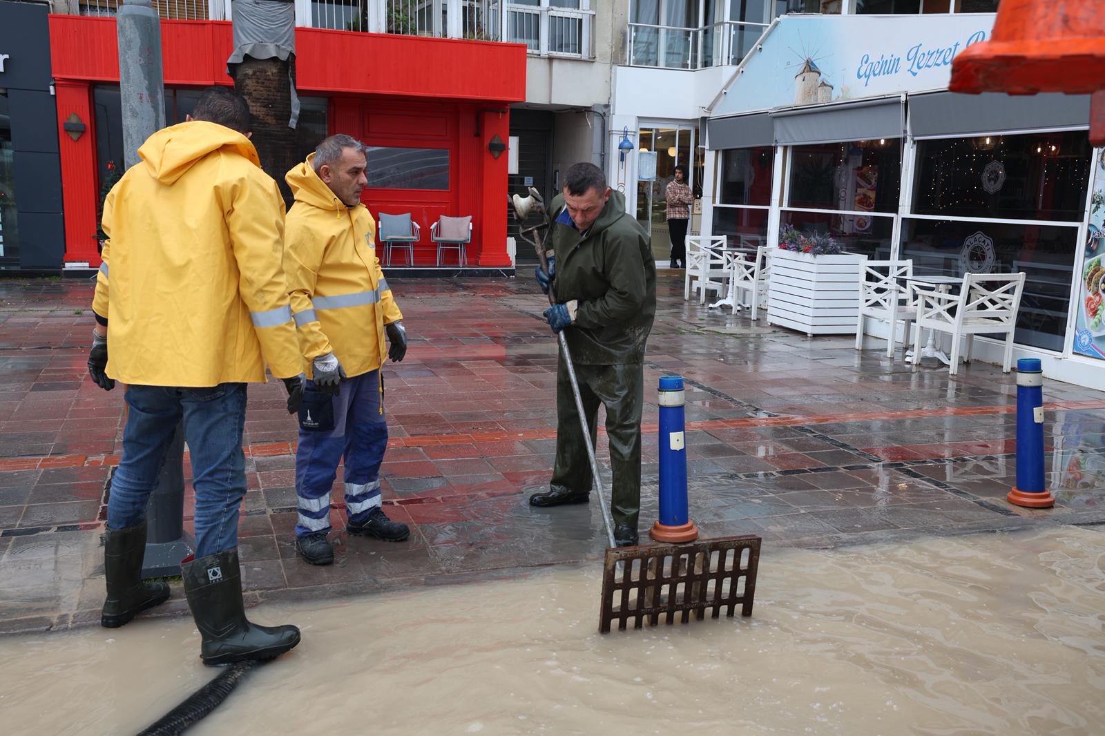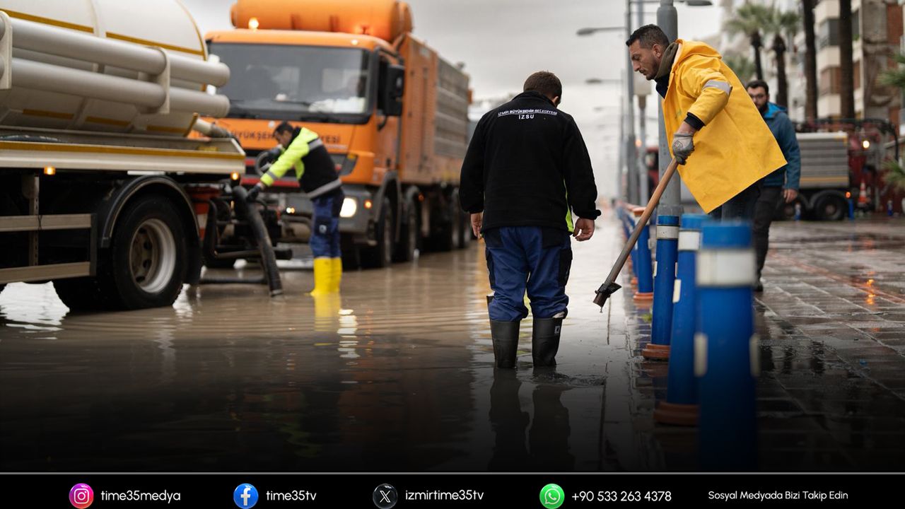 Geçen haftadan itibaren etkisini artırarak gün boyu süren sağanaklar kent genelinde yaşamı etkilerken, İzmir Büyükşehir Belediyesi ekipleri olumsuzlukların önüne geçmek için sahada yoğun mesai yaptı. Büyükşehir Belediyesi, kent merkezi ve çevre yerleşimlerde 1.600 personel ve 500 araçla çalışmalarını aralıksız sürdürdü.