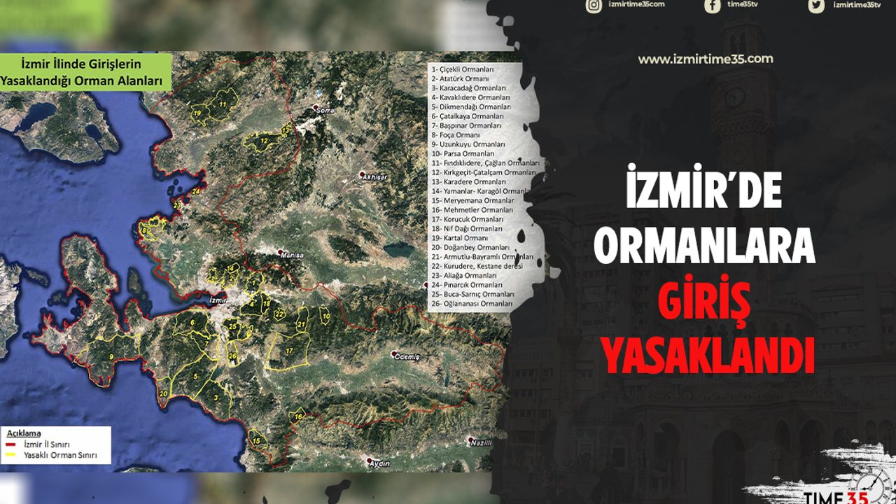 İzmir Valiliği, il genelindeki ormanlara girişlerin yasaklandığını duyurdu. İzmir Orman Yangınlarıyla Mücadele Komisyonu tarafından alınan karar uyarınca il genelinde bulunan 26 ormana girişlerin 31 Ekim 2023’e kadar yasaklandığı ifade edilirken, bu ormanlar çevresinde ve içinden geçen yollarda, orman kenarında mola vermek ve piknik yapmanın da yasaklandığı belirtildi.