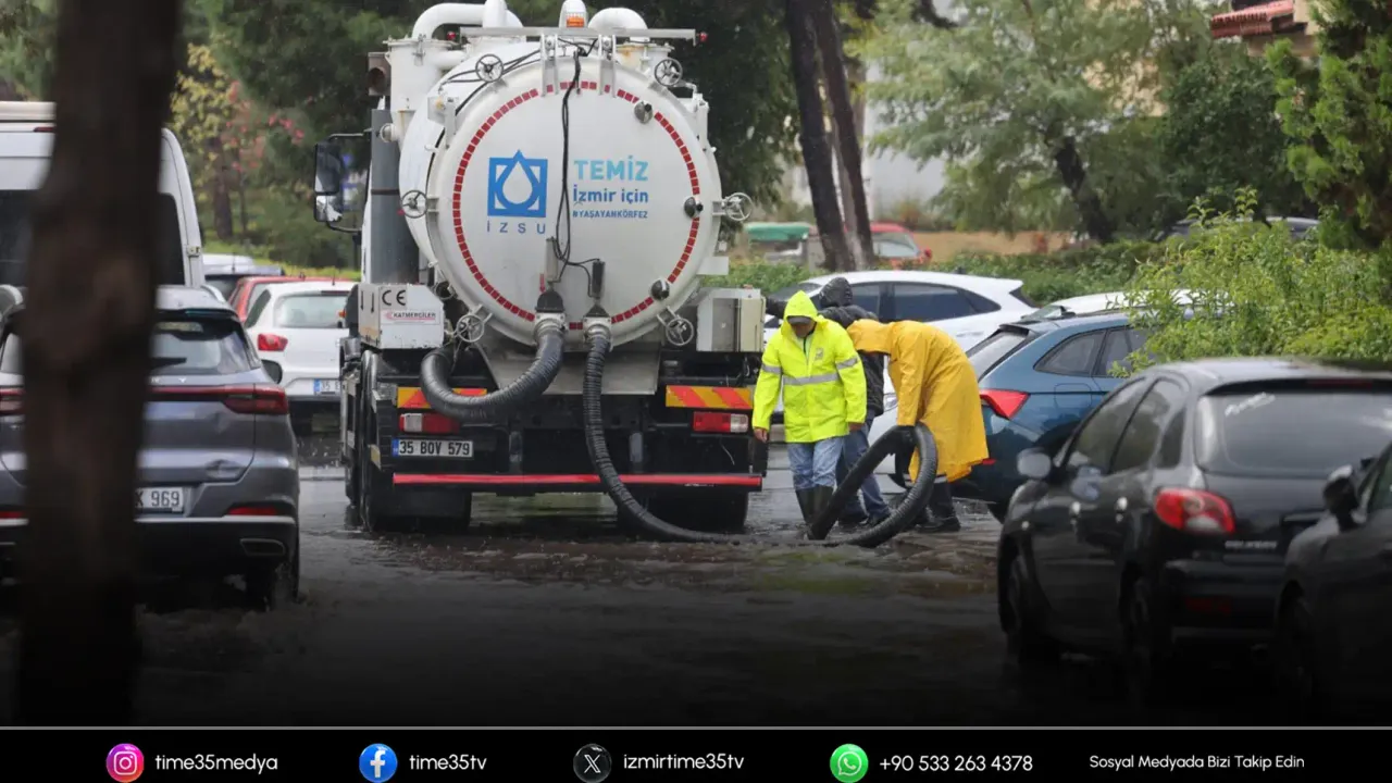 Yoğun yağışın etkili olduğu bölgelerde ekipler, mazgal temizliği, pompa sistemleri ve yağmur suyu hatları üzerinden hızlı tahliye çalışmaları gerçekleştirdi. Bornova, Buca, Menderes ve Konak başta olmak üzere riskli noktalara anında müdahale edilirken, taşkın tehlikesi büyümeden kontrol altına alındı.