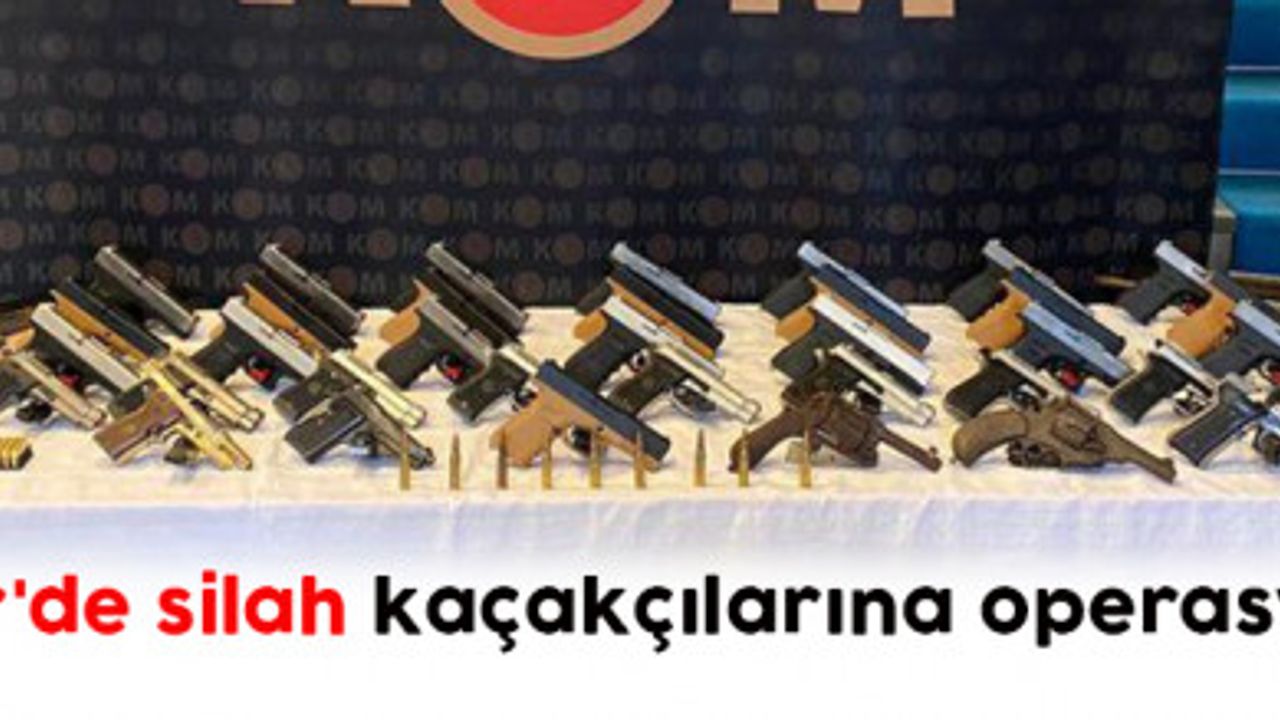 Ödemiş İlçe Emniyet Müdürlüğü Kaçakçılık ve Organize Suçlarla Mücadele Grup Amirliği ekipleri, ilçedeki iki mahallede silah kaçakçılığı yapıldığı yönünde bilgi aldı. Bunun üzerine, teknik ve fiziki takip başlatan polis, bir süre sonra Türkmen ve Küsküt mahallelerindeki iş yeri, ikamet ve çiftlik gibi belirlenen adreslere operasyon düzenledi. Adreslerde yapılan aramalarda, seri numaraları kazınmış ve işlem görmüş 31 kurusıkı tabanca, 2 toplu tabanca, 6 tüfek ve tüfek parçaları, 45 kurusıkı tabanca fişeği, 24 kalaşnikof fişeği, 1 tabanca ve kurusıkıyı tabancaya çevirme işlemine yarayan malzeme ele geçirildi. Silah ve mühimmatlara el konulurken, B.Ü. ve A.A. isimli 2 şüpheli gözaltına alındı. Şüphelilerin emniyetteki işlemleri devam ediyor.