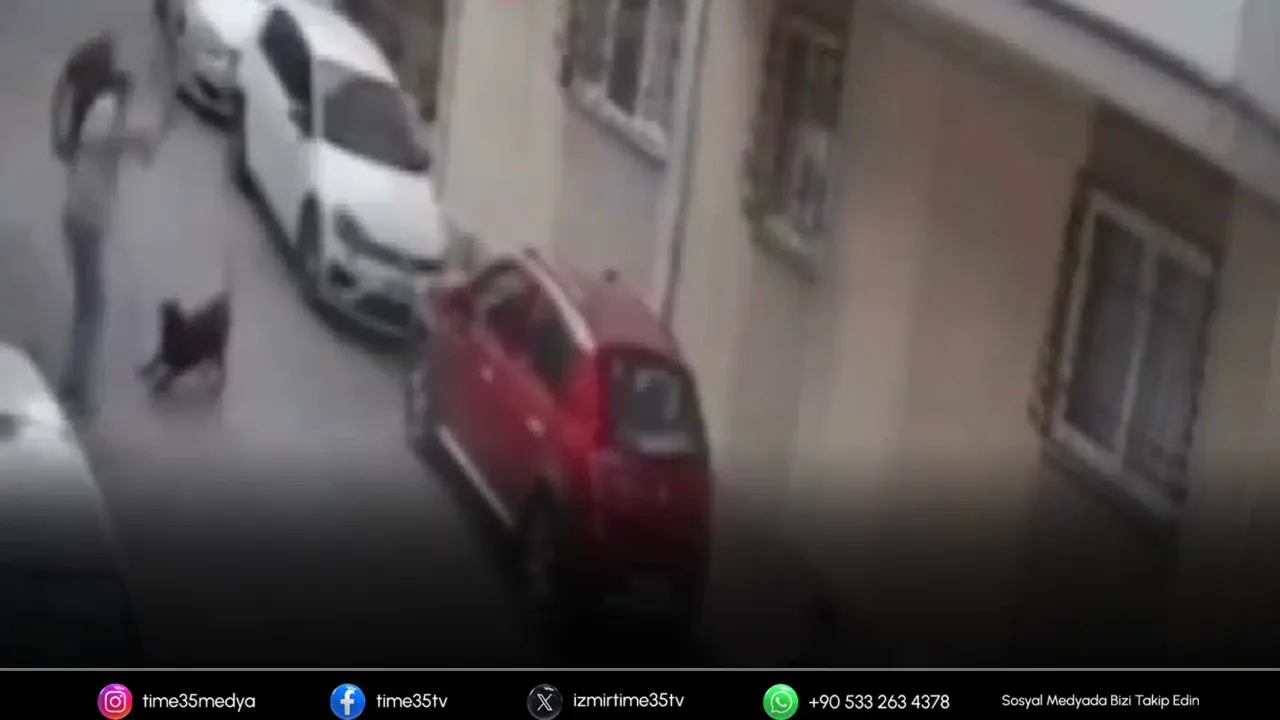İzmir'in Balçova ilçesinde sokakta yürüyen bir kişi, yanına yaklaşan köpeğe belinden çıkardığı kemerle vurdu. O anlar güvenlik kamerasına yansıdı.