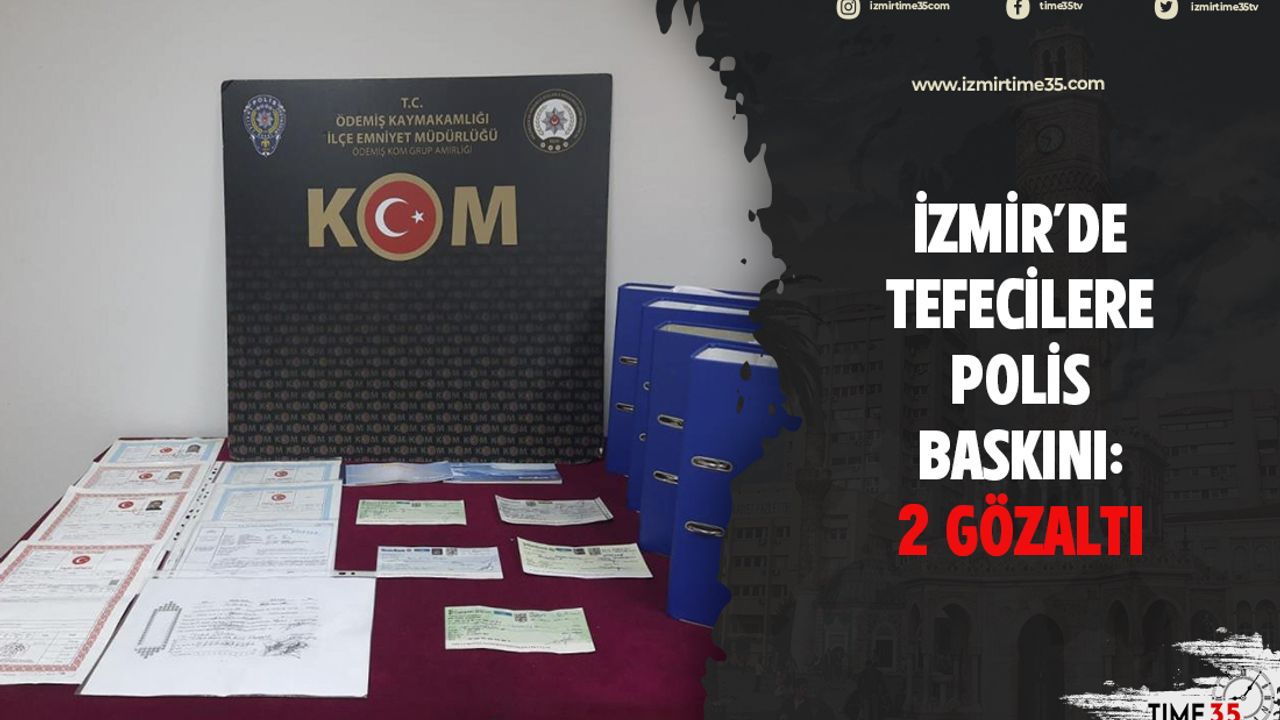 İzmir'in Ödemiş ilçesinde tefecilik yaptığı belirlenen kişilerin evine gerçekleştirilen polis baskınında çok sayıda senet, çek ve tapu ele geçirilirken olayla ilgili 2 şüpheli gözaltına alındı.