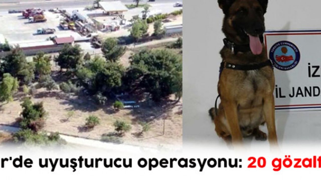 İl Jandarma Komutanlığı narkotik timleri, 6-13 Ağustos'ta Bayındır, Bergama, Beydağ, Çeşme, Foça, Dikili, Menderes, Menemen, Ödemiş, Kemalpaşa, Seferihisar, Torbalı, Tire ve Kiraz ilçelerinde uyuşturucu satanlara yönelik operasyonlar düzenledi. Kokuya duyarlı narkotik köpeklerin de kullanıldığı operasyonlarda 2 bin 459 kök Hint keneviri, 2 kilo 708 gram esrar, 2 av tüfeği ve 23 fişek, 23 uyuşturucu hap ve 3 gram bonzai ele geçirildi. Operasyonlarda 20 kişi, gözaltına alındı. Jandarma Komutanlığı'na götürülen şüphelilerin işlemlerinin sürdüğü belirtildi.