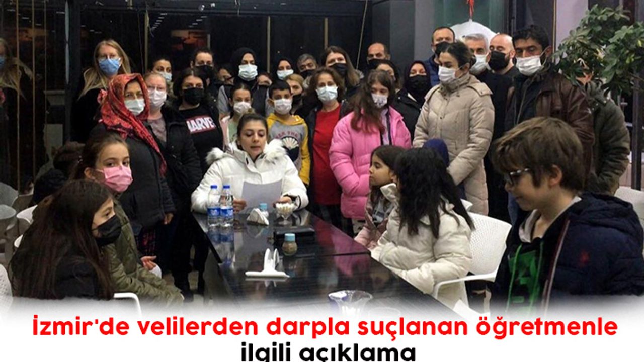 İzmir'in Buca ilçesinde A.M. (9) adlı öğrencisini darbettiği iddia edilen öğretmen F.M.O. için toplanan öğrenci ve veliler, böyle bir olayın söz konusu olmadığını iftira atıldığını söyledi.