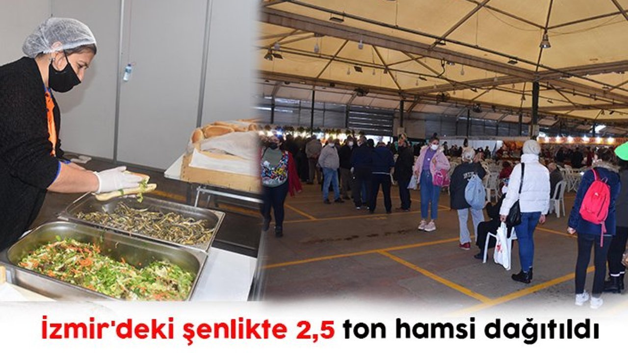 İzmir'de her yıl düzenlenen Karşıyaka Hamsi Şöleni'nin 13'üncüsünde ziyaretçilere pişirilen 2,5 ton hamsi dağıtıldı.