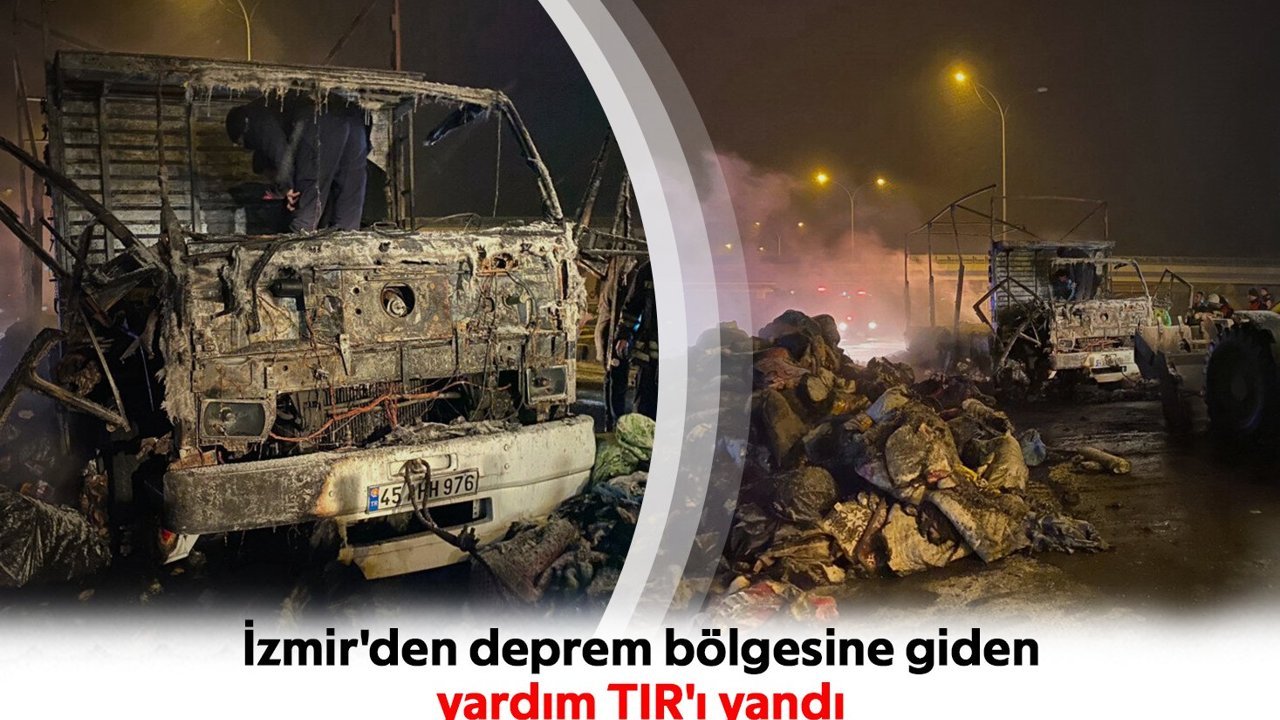 İzmir Erzurumlular Derneği tarafından toplanan yardım malzemelerini Bayraklı ilçesinden Kahramanmaraş'ın Elbistan ilçesindeki depremzedelere götürmek için yola çıkan Abdullah Yağız kontrolündeki 45 AHH 976 plakalı TIR'da, dün saat 22.00 sıralarında yangın çıktı. Afyonkarahisar- İzmir kavşağında TIR'ın şoför kabini, alev aldı. TIR'ı durduran Yağız, dışarı çıkıp, itfaiyeye haber verdi. Bölgeye jandarma, polis, itfaiye ve sağlık ekipleri sevk edildi. Ekiplerin müdahalesiyle alevler, söndürüldü. Yanan TIR'daki yardım malzemeleri de kullanılamaz hale geldi.