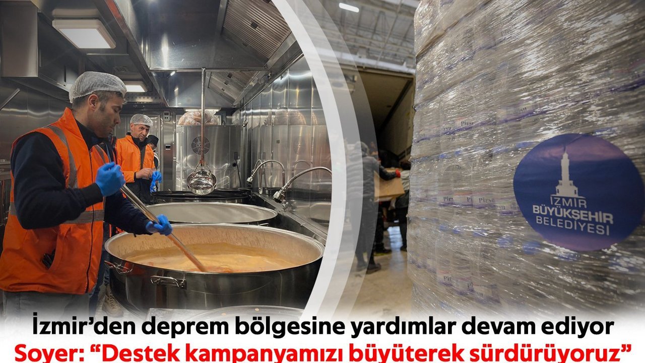 İzmir Büyükşehir Belediyesi’nin merkez üssü Kahramanmaraş olan deprem sonrasında başlattığı destek çalışmaları artarak devam ediyor. İzmir Büyükşehir Belediye Başkanı Tunç Soyer’in başlattığı Umut Hareketi de yurttaşların desteğiyle büyüyor. İzmir’den deprem bölgesine ulaştırılmak üzere üç günde 92 tır, 42 kamyon, 3 uçak ve 1 gemi insani yardım malzemesi, ekipman ve personel Kahramanmaraş, Malatya, Şanlıurfa, Osmaniye, Adana, Adıyaman, Gaziantep, Hatay ve İskenderun’a ulaştı.