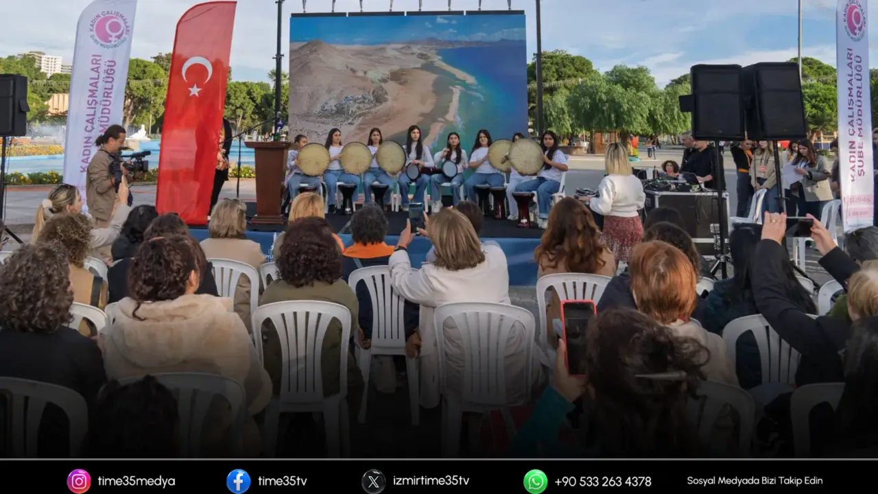 Etkinlikte konuşan İzmir Büyükşehir Belediyesi Genel Sekreter Yardımcısı Prof. Dr. Pınar Okyay, “50’den fazla ülkede yaşayan kadınların yarısı, bedenleri hakkında haklarını kullanamıyor. Ne zaman evleneceklerine, kaç çocuk doğuracaklarına erkekler karar veriyor. Bu erkekler önce babalar ve erkek kardeşleri, büyüdüklerinde de eşleri ya da partnerleri oluyor. Aslında bu, bir toplumsal cinsiyet eşitsizliği sorunu ve bu sorun aynı zamanda kadınlara yönelik şiddeti de getiriyor. Ülkemizde çok yakın zamanda yayınlanan istatistiklere göre her 10 kadından biri yaşamı boyunca fiziksel şiddete maruz kalmış oluyor. Her üç kadından biri ekonomik şiddet görüyor. Yolumuz zorlu ama çok kazanım elde ettik. Çünkü birlikteydik. Birlikte olmaya devam edeceğiz. Yoldaşlığınız çok önemli. Eşit İzmir ve eşit bir dünya için bu yol, birlikte yürünecek bir yol” dedi.