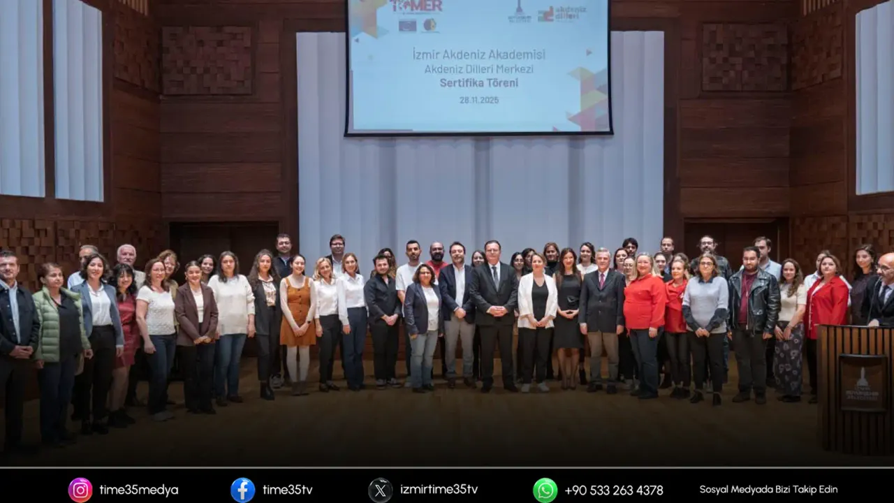 İzmir Büyükşehir Belediyesi Kültür, Sanat ve Sosyal İşler Dairesi Başkanlığı’na bağlı İzmir Akdeniz Akademisi bünyesindeki Akdeniz Dilleri Merkezi’nde sertifika heyecanı yaşandı. Ahmed Adnan Saygun Sanat Merkezi’nde düzenlenen törende konuşan Ankara Üniversitesi Türkçe ve Yabancı Dil Uygulama ve Araştırma Merkezi (TÖMER) İzmir Şube Koordinatörü Öğr. Gör. Özlem Onar, merkezin bilimsel altyapısını ve dil eğitiminde yakalanan başarıyı vurguladı. Ardından kürsüye gelen İzmir Büyükşehir Belediyesi Meclisi İkinci Başkan Mehmet Atilla Baysak, İzmir Büyükşehir Belediyesi’nin eğitim ve kültür alanındaki çalışmalarının önemine değinerek, merkezin kente kattığı değeri ifade etti.