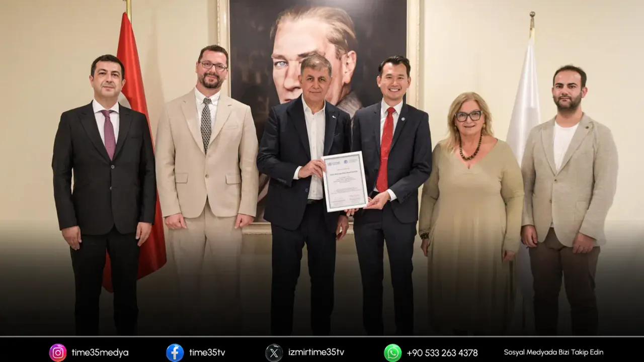Dünya Sağlık Örgütü tarafından kurulan Yaşlı Dostu Şehirler ve Topluluklar Küresel Ağı’na kabul edilerek yaşlı dostu politikalarını uluslararası standartlara taşımak adına önemli bir adım atan İzmir Büyükşehir Belediye Başkanı Dr. Cemil Tugay, Dünya Sağlık Örgütü Avrupa Bölgesi Yaşlanma Ve Sağlık Teknik Sorumlusu Dr. Yongjie Yon’u ağırladı. Yongjie Yon, Başkan Tugay’a Yaşlı Dostu Şehirler ve Topluluklar Küresel Ağı sertifikasını takdim etti. Programda Türkiye’den ağa üye olan iki büyükşehirden biri olma özelliğini taşıyan İzmir Büyükşehir Belediyesi’nin, ileri yaşlı bireylere yönelik hizmetleri ile öne çıktığına dikkat çekildi. Toplantıya İzmir Büyükşehir Belediyesi Genel Sekreter Yardımcısı Prof. Dr. Pınar Okyay ve Sağlık İşleri Dairesi Başkanı Ahmet Soner Emre, Dünya Sağlık Örgütü Türkiye Ofisi Halk Sağlığı Uzmanı Doç. Dr. Tufan Nayır da katıldı.