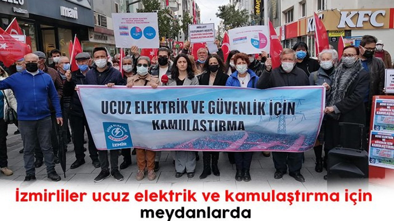 İzmir’de vatandaşın elektrik faturaları cep yakıyor. Elektrik dağıtım şirketlerinin uygulamış olduğu zam İzmirlileri isyan ettirdi. Ucuz Elektrik Platformu İzmir, “Ucuz Elektrik ve Güvenlik İçin Kamulaştırma” başlığı altında İzmirliler, yerel kurum ve kuruluşlar ile basın açıklaması yaptı.