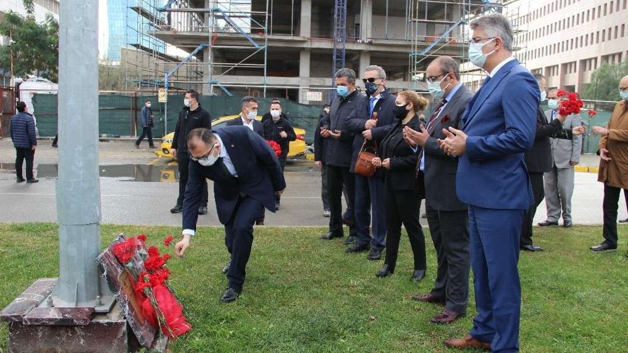 İzmir Cumhuriyet Başsavcısı Kamil Erkut Güre, Adalet Komisyonu üyeleri ve başsavcı vekilleri, 5 Ocak 2017’de meydana gelen hain terör saldırısında şehit düşen polis memuru Fethi Sekin’in şehit düştüğü alana ve heykeline karanfil bıraktı.