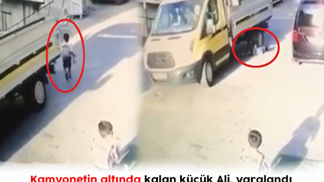 Kamyonetin altında kalan küçük Ali, yaralandı