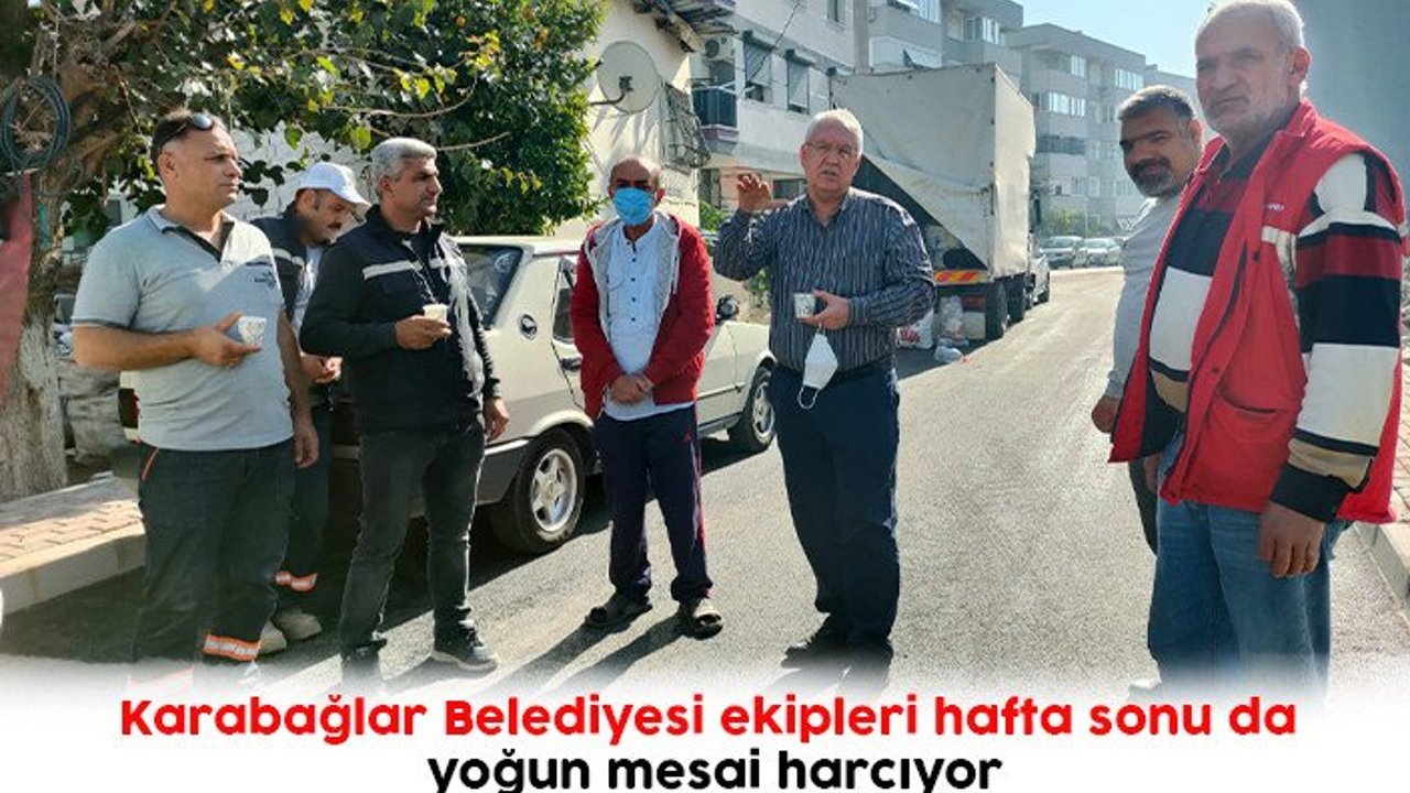 Karabağlar Belediyesi'nin Fen İşleri Müdürlüğü'yle Park ve Bahçeler Müdürlüğü ekipleri hafta sonu mesaisi kapsamında Aşıklar Caddesi'nde yol açılması, Yıldız Kenter Kültür Merkezi'nin çevre düzenlemesi, Yeşilyurt Yadigar Parkı ve Fahrettin Altay Mahallesi Havek Parkı düzenlemeleri gibi çalışmalarına devam ettiler. Ayrıca Bahriye Üçok, Günaltay, Esenyalı, Yurtoğlu, Yüzbaşı Şerafettin, Esenlik, Tahsin Yazıcı, Ali Fuat Cebesoy mahallelerin de yol, asfaltlama ve kaldırım çalışmaları yapıldı. Yüklenici firma tarafından yürütülen Uzundere Meydanı ve Çevre Düzenleme Projesi de devam ediyor.