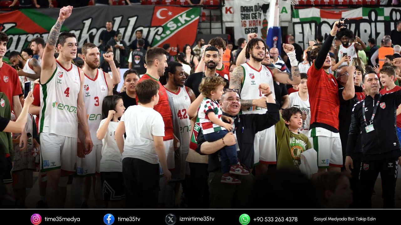 Karşıyaka için hayati önemdeki maçı eski başkanlar Cenk Karace, İlker Ergüllü, Mutlu Altuğ ve yeşil-kırmızılılara büyük destek veren Folkart Yapı Yönetim Kurulu Başkanı Mesut Sancak da izledi. Büyükçekmece maçında rakip yöneticiye tokat attığı için Basketbol Federasyonu Disiplin Kurulu’ndan 6 ay hak mahrumiyeti cezası alan Başkan Aygün Cicibaş, mücadeleyi saha içi yerine bench arkasında tribünde takip etti