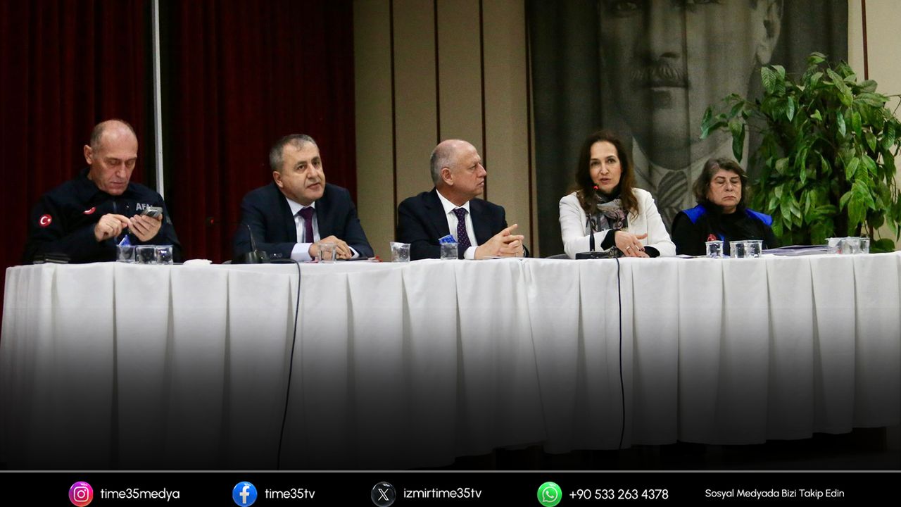 Karşıyaka Kaymakamı Özkan Demir de “Afetler konusunda çok hassas bir ülkeyiz. İzmir özelinde son 5 yıla baktığımızda büyük bir deprem yaşadık. Karşıyaka’da büyük bir orman yangını yaşadık. Taşkın meselesiyle karşılaştık. Küresel iklim değişikliğinin de getirdiği afetlerle karşı karşıya kalmak durumundayız. Bundan dolayı dersimize iyi çalışmak, hazırlıklarımızı iyi yapmak, yol haritamızı iyi bilmek ve takip etmek durumundayız. Bu noktada bu toplantıyı çok önemsiyorum ve amacına ulaşmasını diliyorum” diye konuştu.