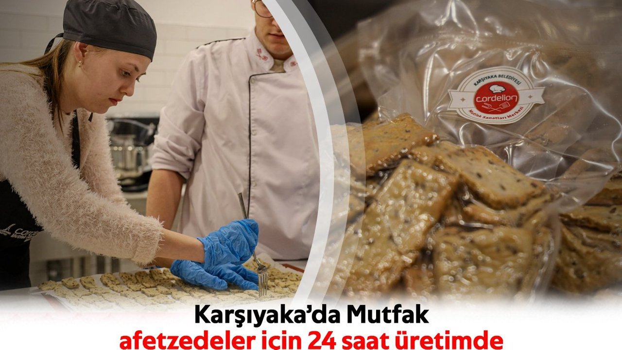 Söke Un ve Abalıoğlu Yağ gibi çeşitli firmaların malzeme desteği sağladığı üretim, 24 saat aralıksız çalışmayla hafta sonuna kadar devam ettirilecek. Hazırlanan ve vakumlu poşetlerle paketlenen ilk yiyecek kolileri, bugün yardım TIR’ı ile yola çıkarılacak ve yarın Karşıyaka Belediye Başkanı Dr. Cemil Tugay’ın da bulunduğu deprem bölgesine ulaştırılacak.
