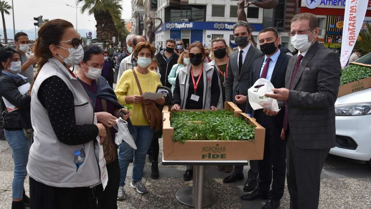 Karşıyaka İlçe Tarım Müdürü Bülent Üngür ise 'Bugün Karşıyakalı kadınlarımızla 10 bin adet fideyi buluşturmanın mutluluğunu yaşıyoruz. Fidelerimiz tamamen TİGEM tarafından yetiştirilmiş yerli ve milli olarak üretilen tohumlardan yetiştirildi. Bunu vatandaşlarımızın tarımı anlamaları, kendi elleriyle besleyip büyüttükleri fidelerden üretecekleri ürünleri kendi sofralarında tüketmeleri, çocuklarımızın da bir domatesin nasıl yetiştiğini görmeleri anlamında çok faydalı buluyoruz.