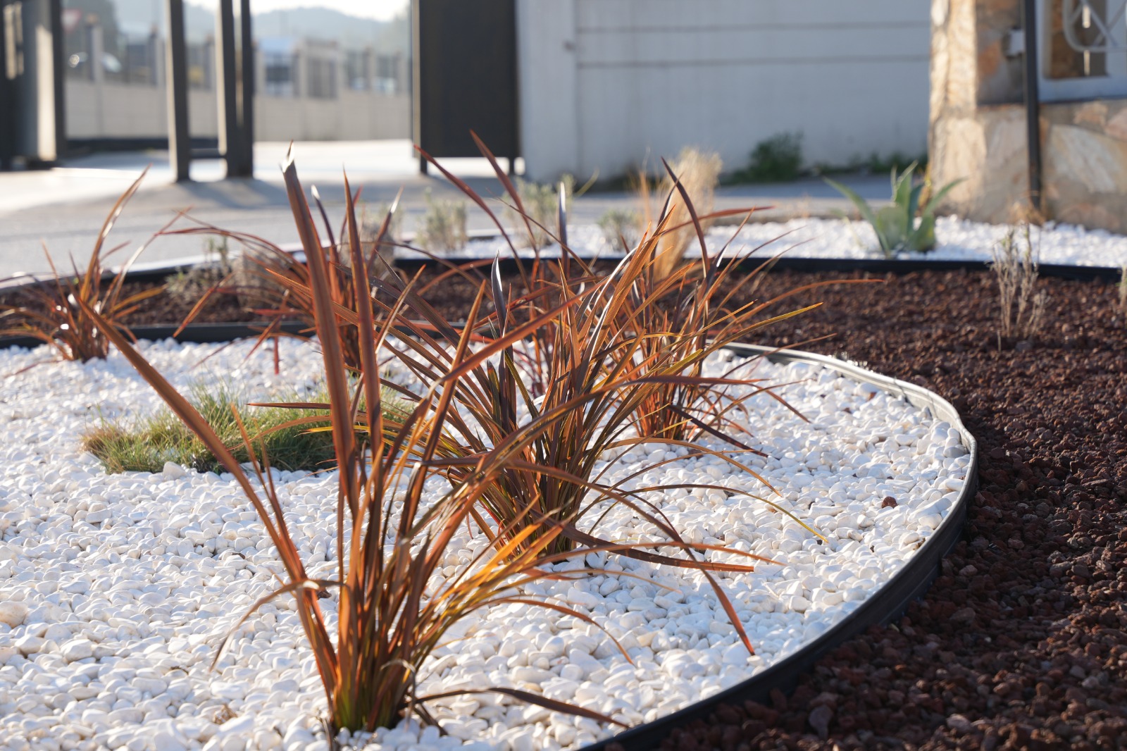 Uygulama kapsamında yüksek su tüketimi gerektiren çim alanlar yerine, kuraklığa dayanıklı bitki türleri tercih edildi. Doğal taş, dekoratif çakıl ve az bakım gerektiren peyzaj unsurlarıyla hem çevre dostu hem de estetik bir görünüm sağlandı. Bu sayede su tüketimi önemli ölçüde azaltılırken, bakım maliyetlerinin de düşürülmesi hedeflendi.