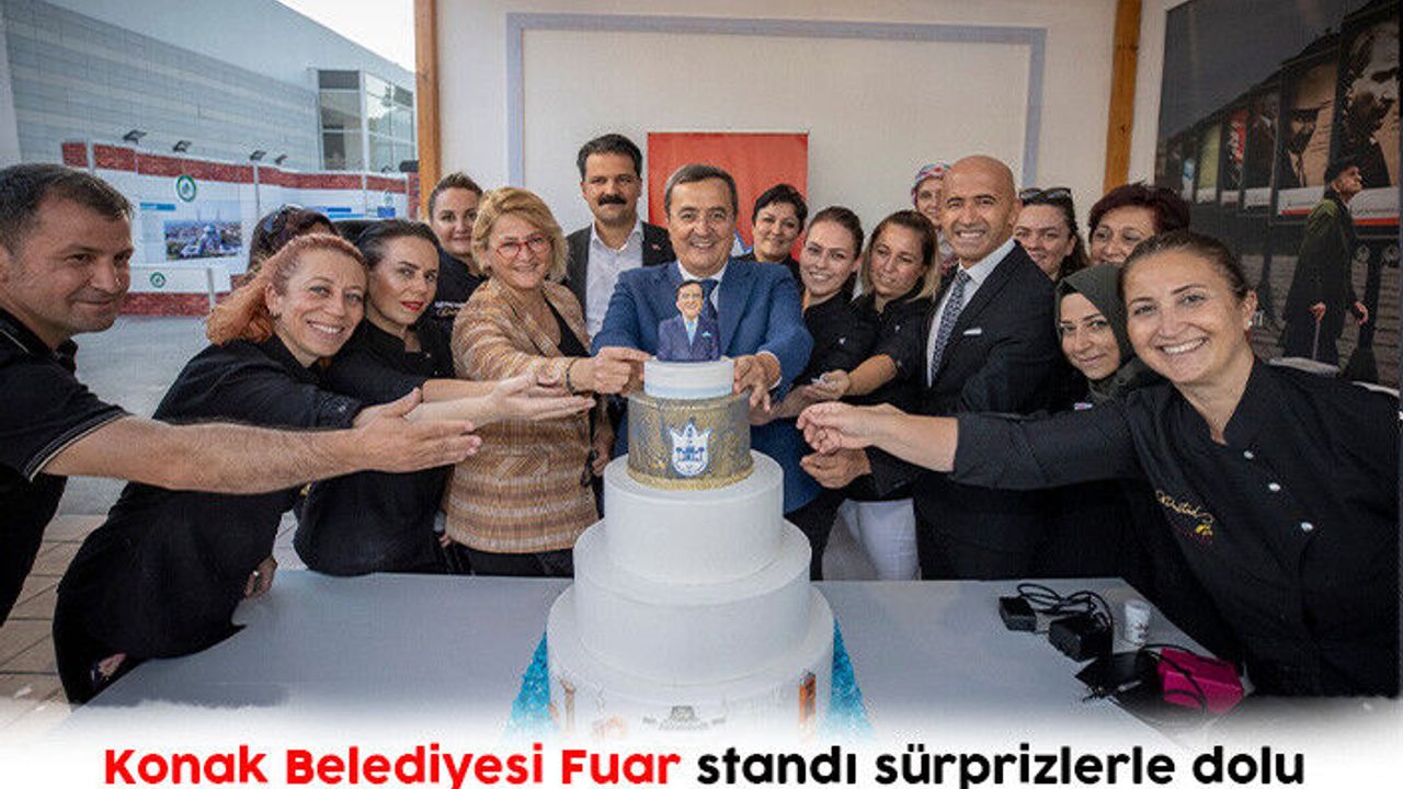 Fuar’ın ilk günü Konak Belediye Başkanı Abdül Batur’un belediye standında ziyaretçileri karşılayıp Nutuk hediye etmesiyle yoğun saatlerin yaşandığı Konak Belediyesi standına bu kez de Pasta Tasarımcıları Derneği (PASTAD) üyelerinin Başkan Batur’a hazırladığı sürpriz damgasını vurdu. Geçtiğimiz günlerde PASTAD ile imzalanan protokol çerçevesinde her iki taraf arasında işbirliğine gidilmesi konusunda adımlar atılırken bu işbirliği ilk meyvesini İzmir Uluslararası Fuarı’nda verdi. PASTAD üyeleri hazırladıkları, Konak Belediye Başkanı Abdül Batur’un figürünün bulunduğu pasta ile Başkan Batur’a sürpriz yaptılar. CHP Konak İlçe Başkanı Çağrı Gruşçu, Konak Belediye Meclisi Üyesi ve aynı zamanda Kadın Kooperatifi Başkanı Nesrin İlkutlav ve PASTAD Yönetim Kurulu Başkanı Sabiha Sezen Sel ile birlikte kendisi için hazırlanan figürü pastanın üzerine yerleştiren Başkan Batur, PASTAD Başkanı ve üyelerine teşekkür etti.